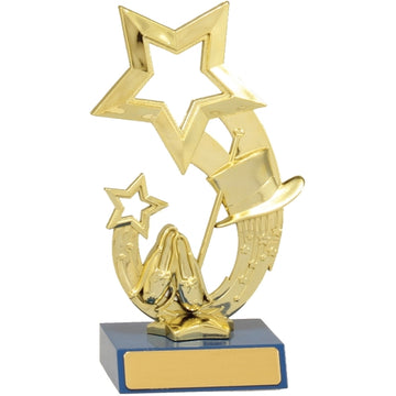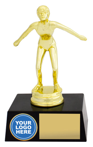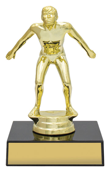 Trophy figurine on base. Includes the figurine, trophy base (select black or color) and hardware...