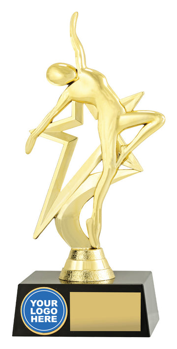 Trophy figurine on base. Includes the figurine, trophy base (select black or color) and hardware...