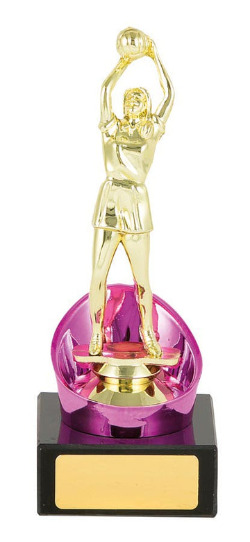 Netball trophies feature interesting abstract netball design – ‘The Ball’ – finished in classic trophy...