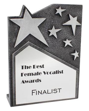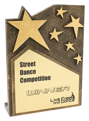 A substantial plaque style trophy that features distinctive star elements. Ample space for your engraving...