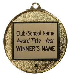 Medal Engraving plates for our medals are Laser engraved onto brushed Gold, Silver or Bronze. A special brushed metallic finished material used which the lowest cost option and industry standard.