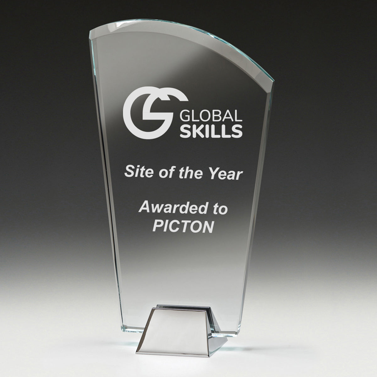 Glass awards feature metal base for extra prestige, Tracer Series offers great value & design. Detachable base for ease of use.
