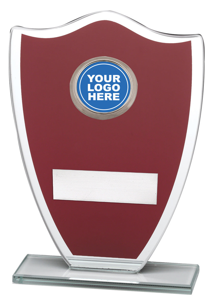 Affordable glass award – supplied in gift box – in traditional shield shape with red panel for your engraving requirements. Part of the range of budget glass awards for you to consider.